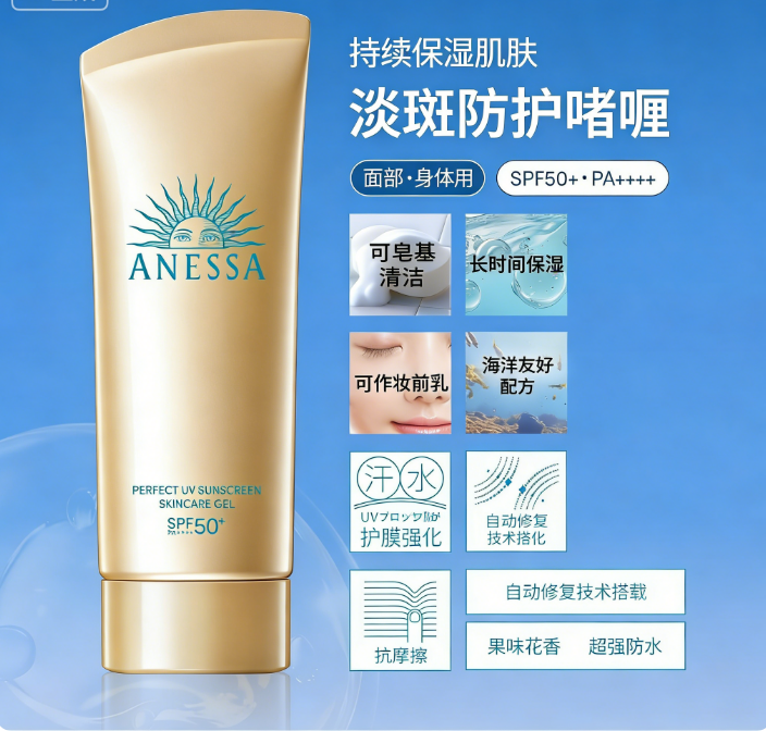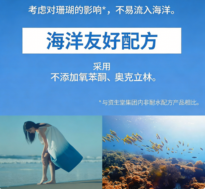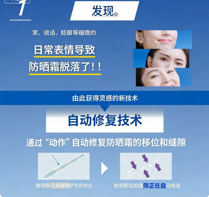 搭载自动修复技术,可自动修复因活动造成的防晒膜移位、断层。