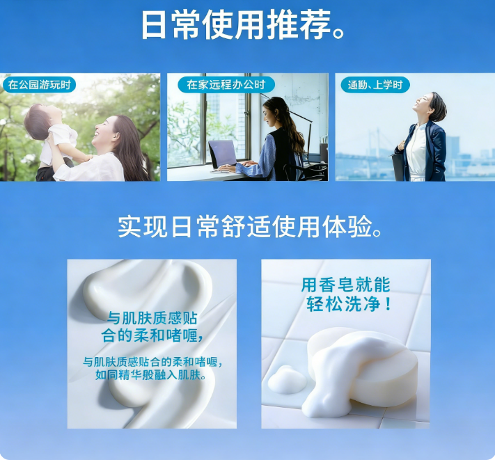可用普通洗面奶轻松洗净,适合日常使用。