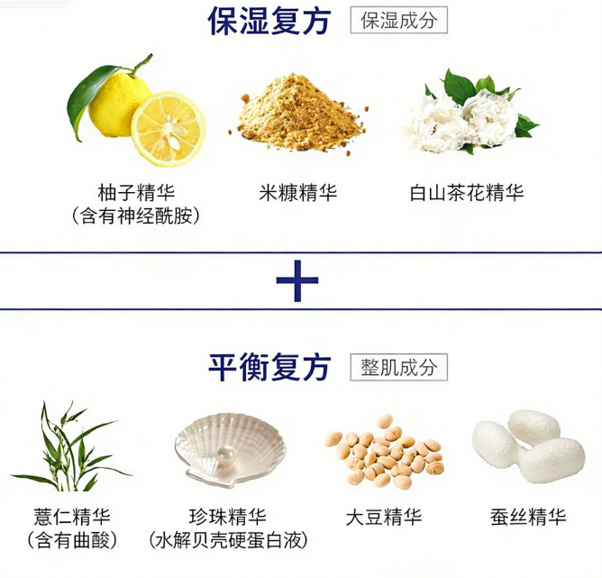 • 补水保湿:快速渗透补水,长效锁水,缓解肌肤干燥;