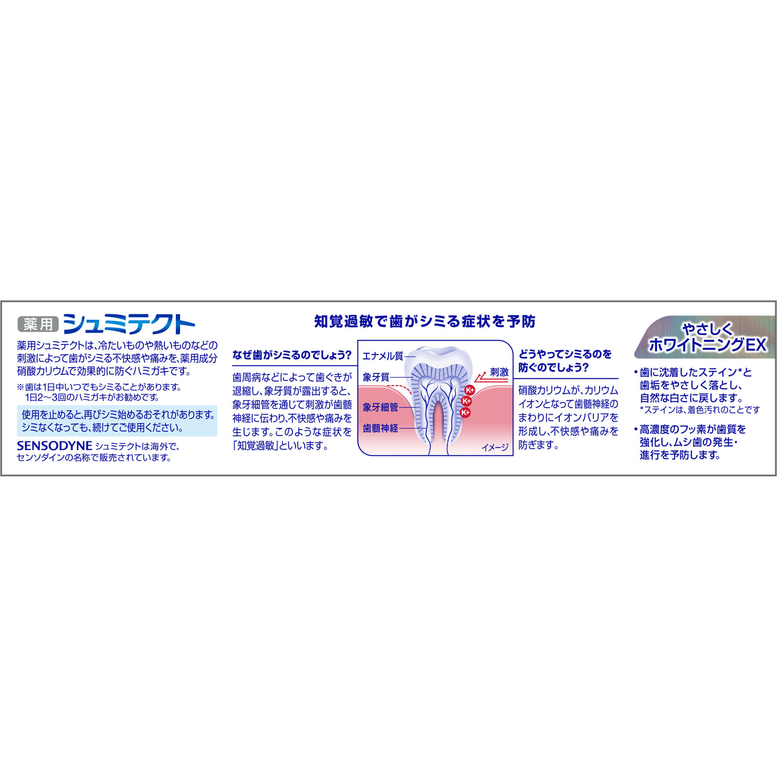 「シュミテクト やさしくホワイトニングEX」(舒蜜特克温和美白EX牙膏),专为牙齿敏感人群设计,兼顾敏感护理与温和美白,同时清洁口腔、预防蛀牙,全方位守护口腔健康,是敏感牙人群日常护理的优选好物。