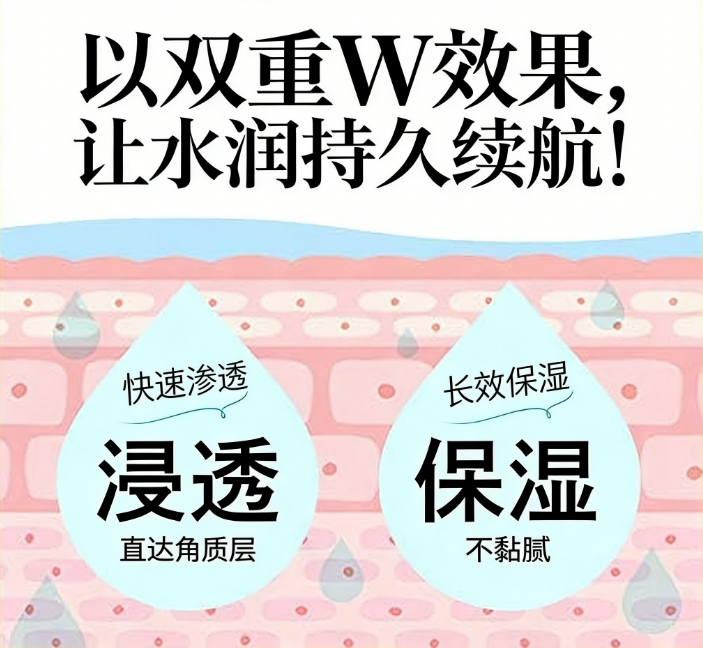 依靠马油强大的渗透力 + 保湿力,让肌肤持久水润饱满,直达角质层深处。