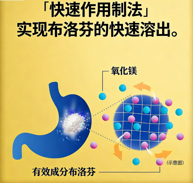 ○ 采用独家速释技术(Quick Action 錠),实现布洛芬快速溶出。