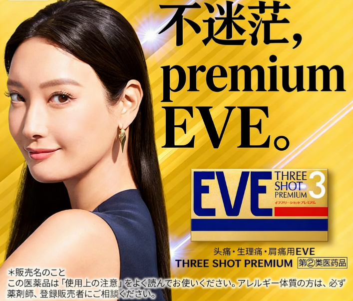 ● EVE THREE SHOT PREMIUM 是一款专为头痛、生理痛、肩颈痛设计,能强效缓解疼痛的制剂。
