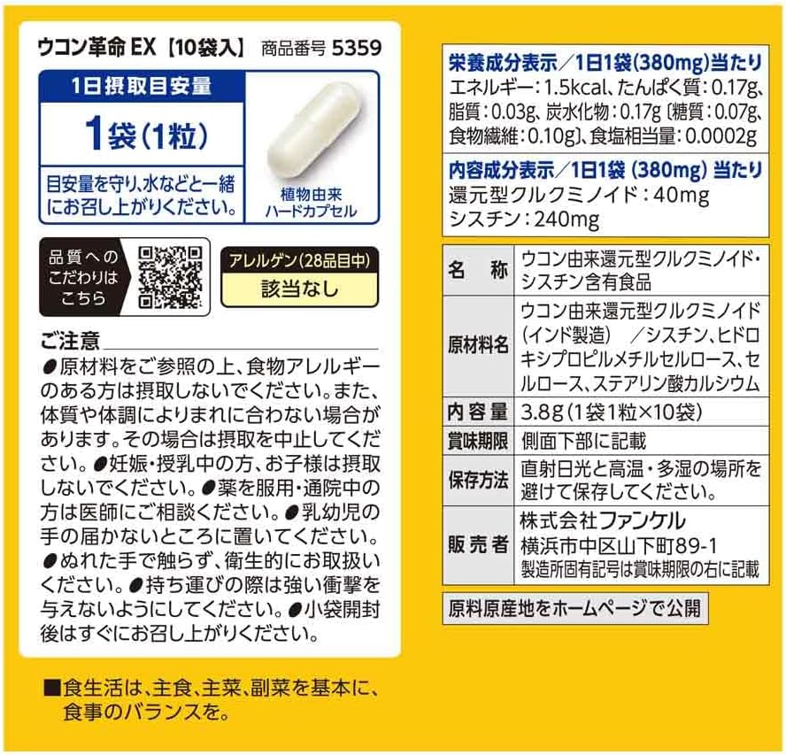 日本 FANCL 芳珂新版姜黄革命 EX,高吸收还原型姜黄素搭配胱氨酸,酒前服用,帮助应酬饮酒后清爽舒适。独立小包装,便携易带,是日常聚会、商务应酬的贴心常备保健品。