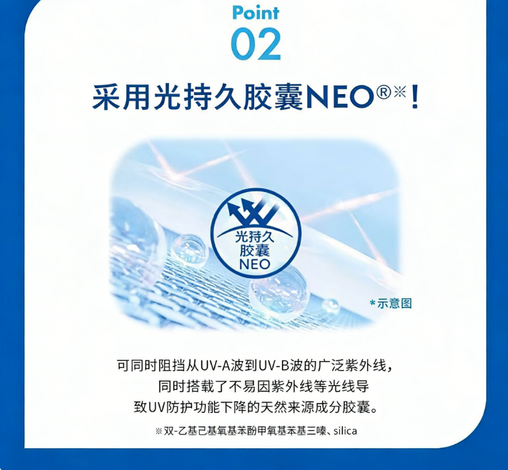 - 高稳定防晒剂:长效抵御 UVA/UVB
