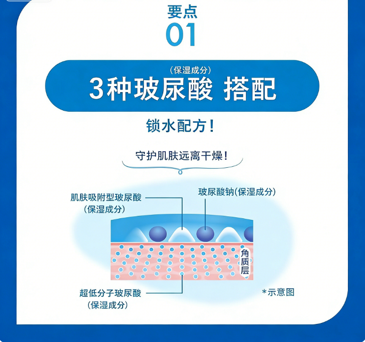 - 三重玻尿酸:深层补水、锁水、修护肌肤屏障