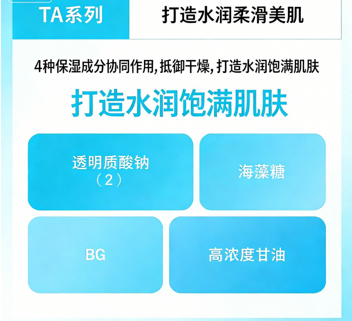 - 保湿成分:透明质酸钠 + 海藻糖 + 浓甘油 + BG —— 深层补水、修护屏障