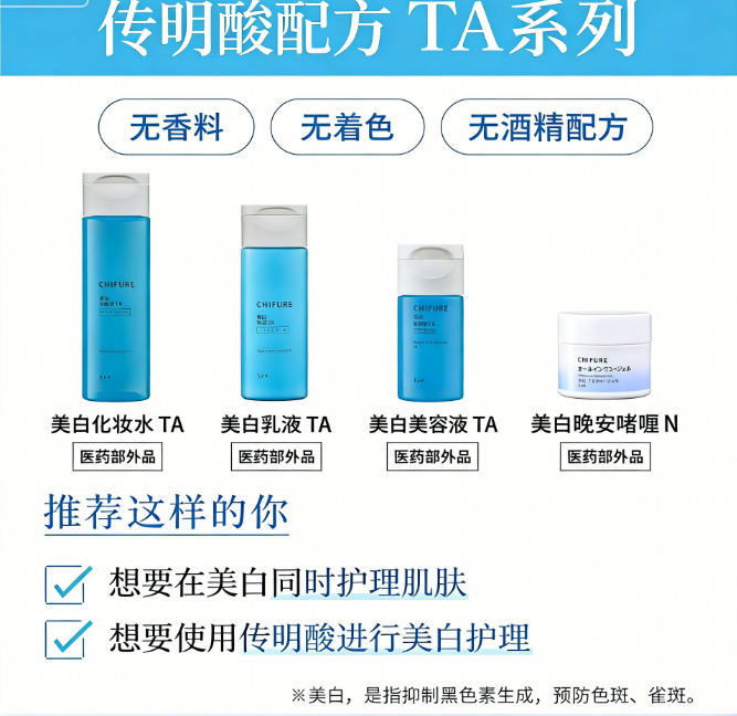 - 美白 + 抑斑 + 防粗糙,多效合一药用化妆水