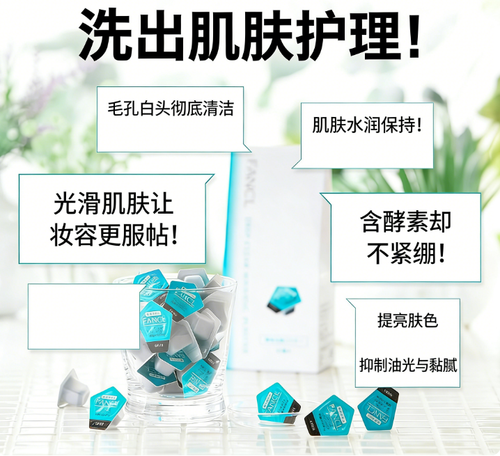 FANCL 芳珂 深层清洁酵素洗颜粉,是一款专为毛孔清洁设计的无添加酵素洁面产品,采用独立一次性包装,干净卫生、便携易存。主打一次性清除毛孔污垢、黑头与角栓,搭配炭与泥成分,在温和清洁的同时锁住肌肤水润,洗后不紧绷、毛孔清爽通透,持续使用可打造细腻无毛孔感的健康肌肤。