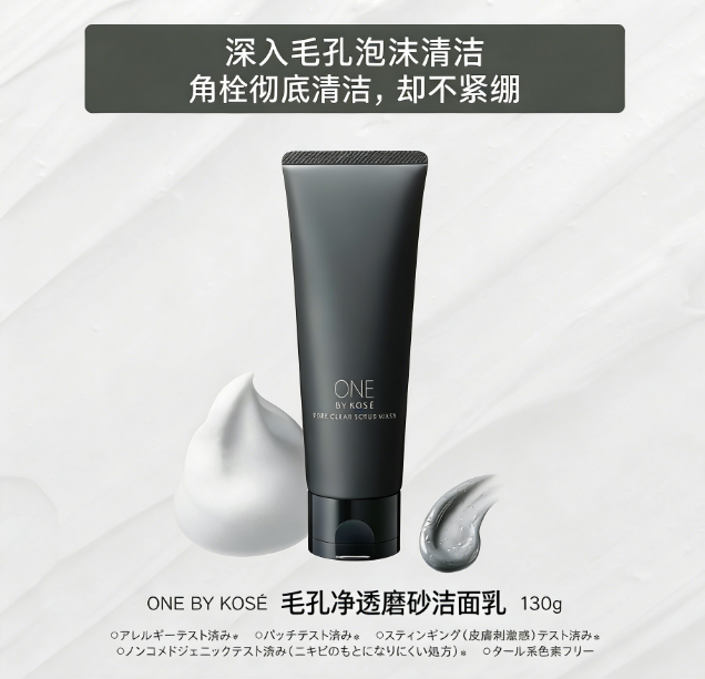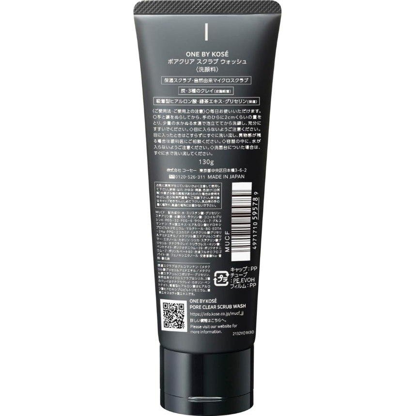 ONE BY KOSE 毛孔净透磨砂洁面膏 130g 去角栓黑头 透明质酸保湿 日本直邮
