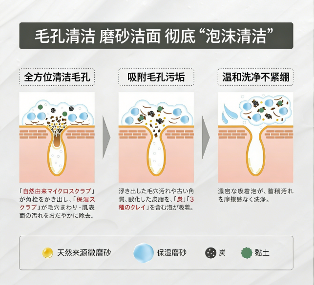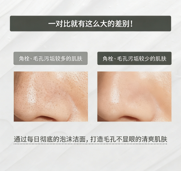 ✅ 清洁毛孔深处油脂与脏污,改善毛孔粗大