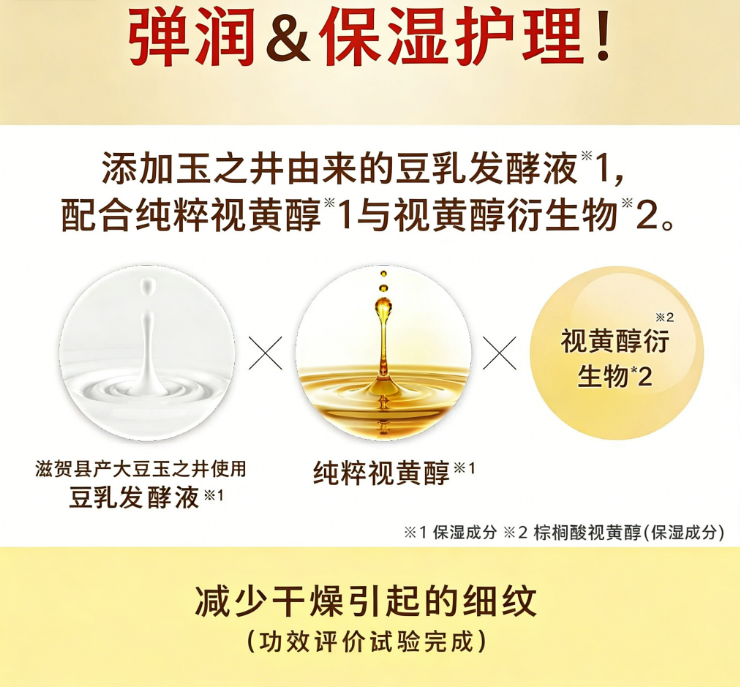 - 抗衰淡纹:视黄醇与大豆异黄酮协同作用,帮助淡化细纹,提升肌肤紧致度与弹性