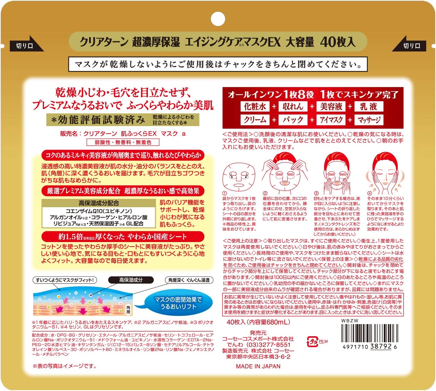 保湿面膜KOSE 高丝 日本直邮CLEAR TURN 超浓厚保湿面膜 EX 40 片 赠鼻用角栓贴 高保湿补水大容量