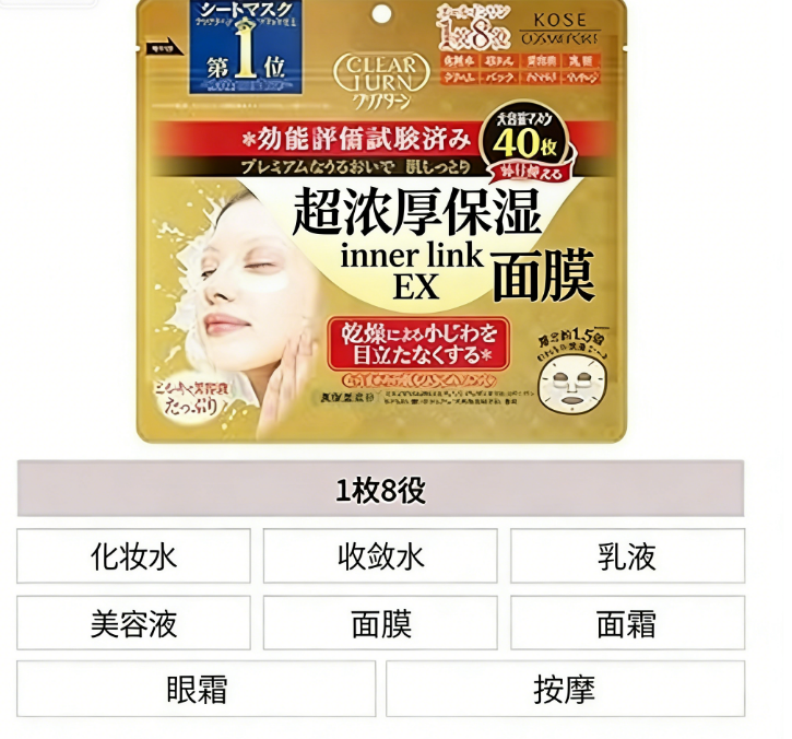 高丝 CLEAR TURN 超浓厚保湿面膜 40 片 — 产品详细说明